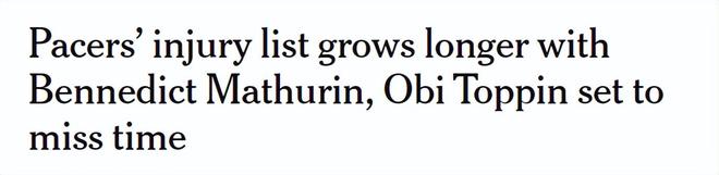 步行者又伤了!托平腿筋拉伤至少休1个月 马瑟林脚趾扭伤每周评估