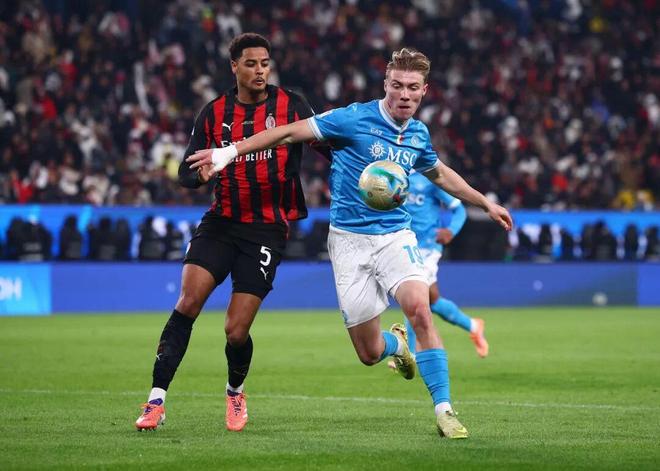 在利雅得的沙特国王大学球场,意大利超级杯半决赛中,赫伊伦和恩昆库的对比,以一种最鲜明的方式呈现出来。丹麦前锋传射建功,助那不勒斯2比0淘汰AC米兰,毫无悬念地当选本场最佳,以真正属于中锋的方式击溃了他本可加盟的“潜东家”。